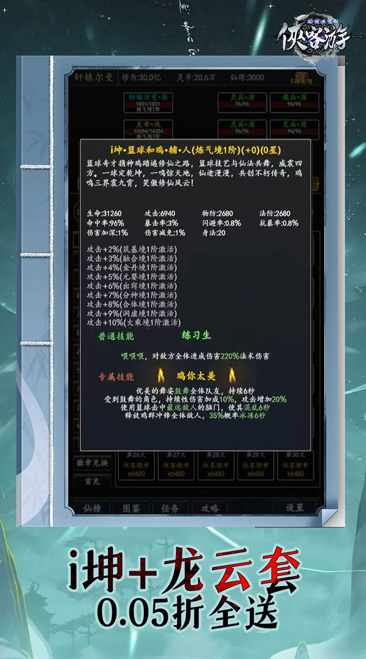 《侠客游(全新文字吞噬0.05折)》——挂机摸鱼卷王,新版本更躺赢!